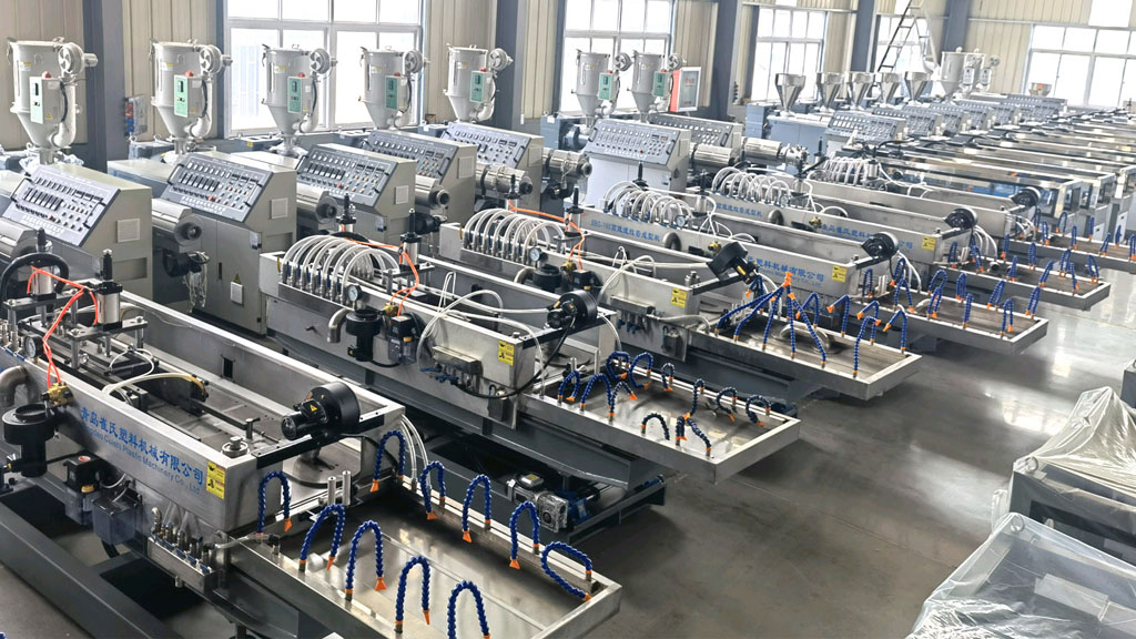 青島崔氏塑料機械有限公司位于青島膠州市膠西工業園區,香港路與同三高速交匯處,距膠東國際機場20多公里,地理位置便利,占地面積20000多平方米,是一家集生產與研發各種塑料制品設備的環保型企業。我公司主營預應力波紋管設備、雙壁波紋管設備、電力管設備、塑料波紋管設備、汽車線束波紋管設備、PPR、PE、PVC、PERT管材設備及其它各種管材設備、塑料型材設備、塑料蜂窩板設備。公司技術力量雄厚,開發能力強,生產工藝先進,以開發新材料,研制新工藝為基礎生產各種塑料擠出設備。公司產品遍布全國各地,并且遠銷歐州,獨聯體,南美洲,中東,東南亞,大洋州,非洲等許多國家和地區。