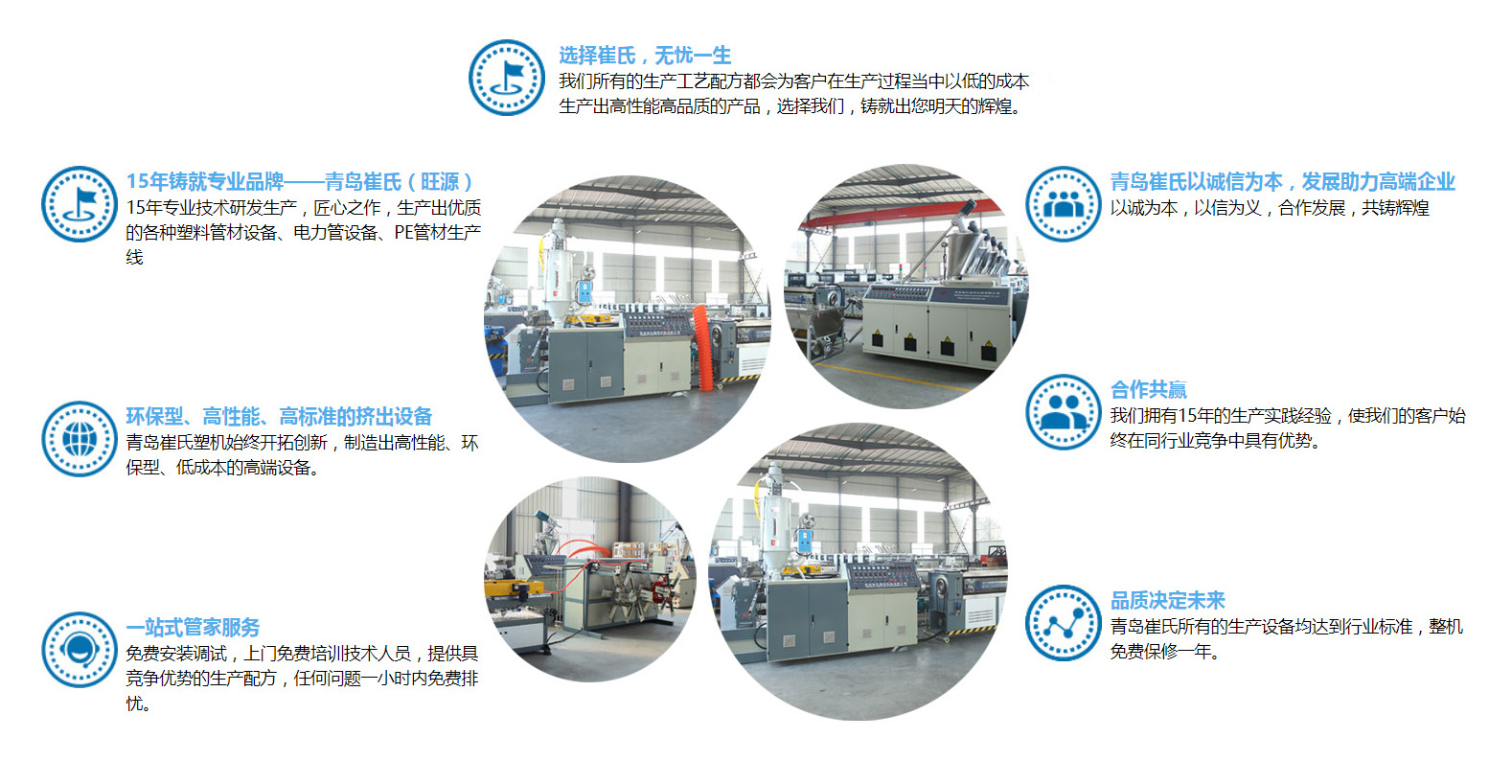 青島崔氏塑料機械有限公司始終以開拓創新的精神,緊跟世界塑機行業的發展趨勢,專注研發與生產預應力波紋管全線設備,公司已有20多年的生產與實踐經驗,在市場大環境下,緊跟國家發展趨勢,使我們的客戶在市場競爭中有一席之地,人生就是不斷決定的過程、決定沒有對與錯,只有得與失!選擇崔氏我們定不負卿。